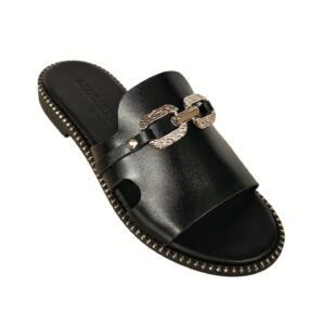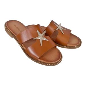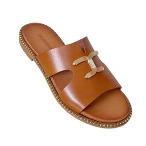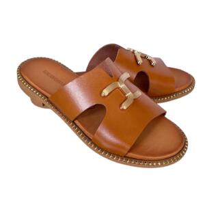 Δερμάτινα σανδάλια με μεταλικό διακοσμητικό