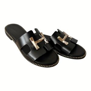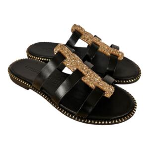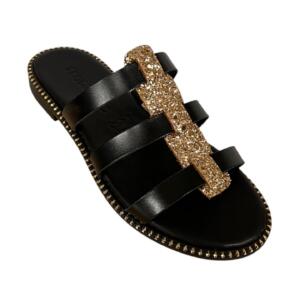 Women’s handmade leather sandals GKAVOGIANNIS BLACK GLITTER BLACK – 385
