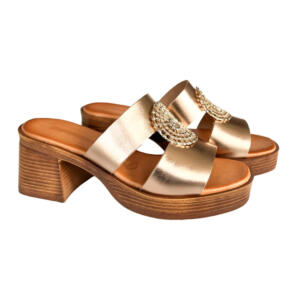 Δερμάτινα Γυναικεία Πέδιλα GKAVOGIANNIS με Τακούνι ROSE GOLD – 460
