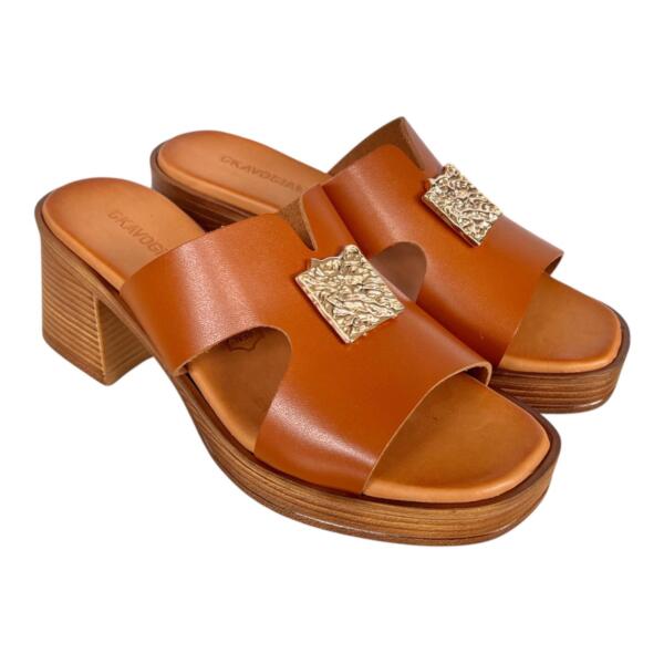 The GKAVOGIANNIS flatform leather sandals with wide heel and gold plated metallic decorations exude modern elegance and minimal luxury. Their modern design enhances every summer look, while offering comfort and stability with every step.