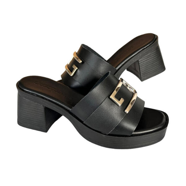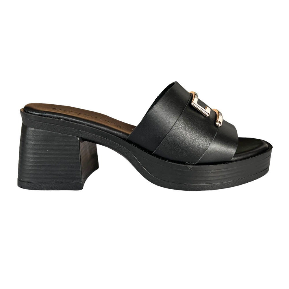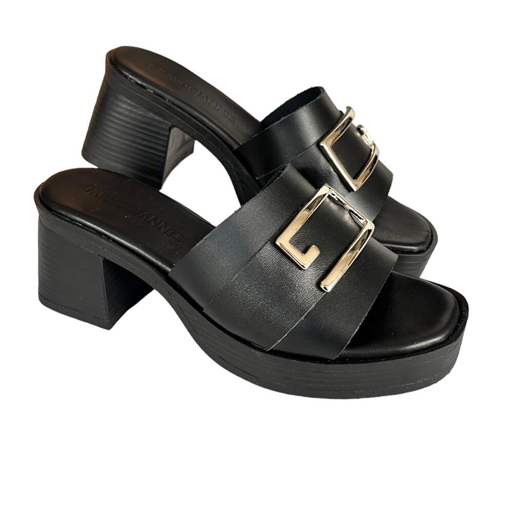 Δερμάτινα Γυναικεία Πέδιλα GKAVOGIANNIS με Τακούνι ΜΑΥΡΟ – 465