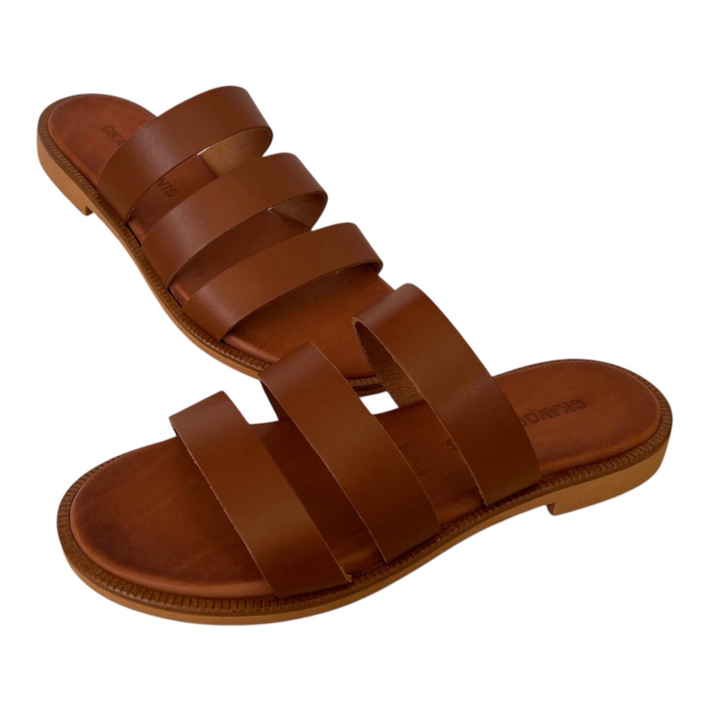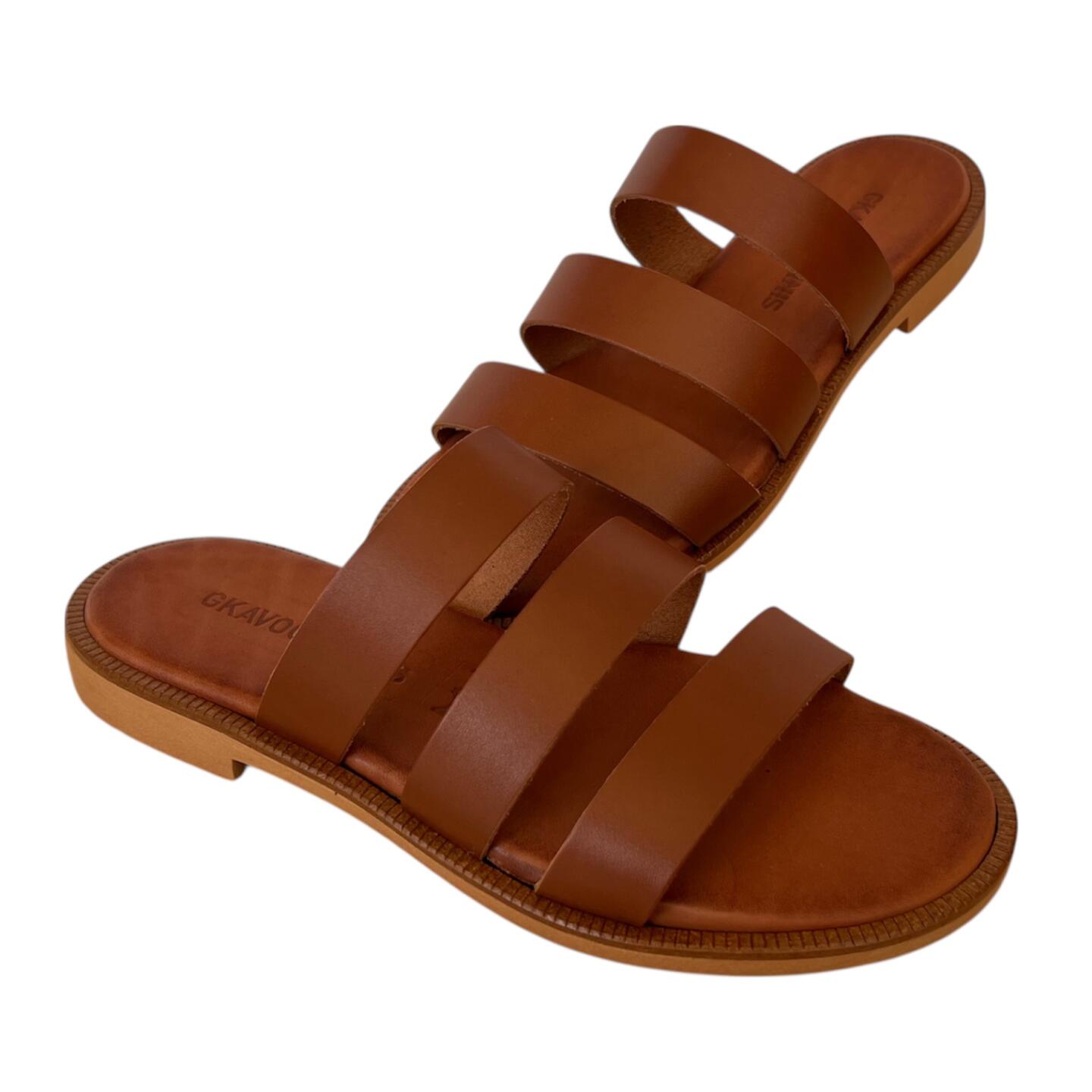 Το χειροποίητο flat δερμάτινο σανδάλι GKAVOGIANNIS αποτελεί μία κομψή και διαχρονική επιλογή για κάθε καλοκαιρινή εμφάνιση. Ο προσεγμένος σχεδιασμός του αναδεικνύει το πόδι, προσφέροντας ταυτόχρονα άνεση και σταθερότητα σε κάθε βήμα.
