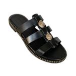 The handmade flat leather sandal GKAVOGIANNIS with gold plated decorative elements is an elegant and timeless choice for every summer look. Its thoughtful design highlights the foot, while offering comfort and stability with every step.