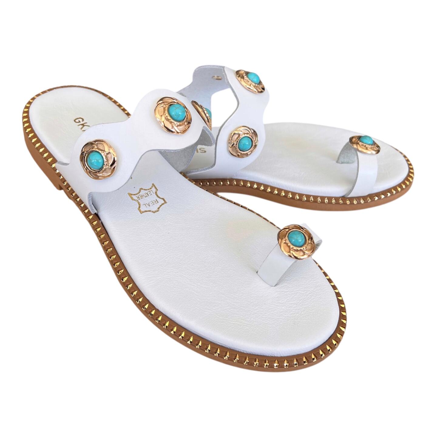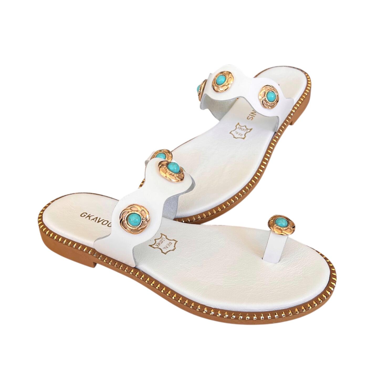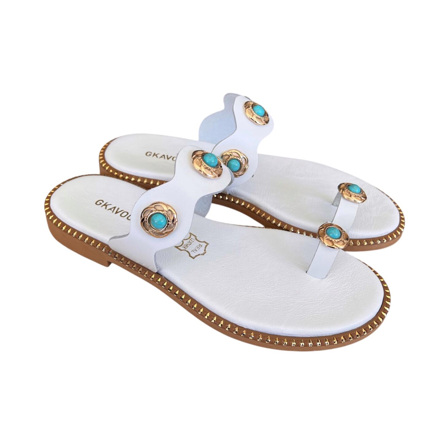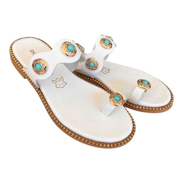 Γυναικεια χειροποιητα δερματινα σανδαλια GKAVOGIANNIS ΛΕΥΚΟ – 605