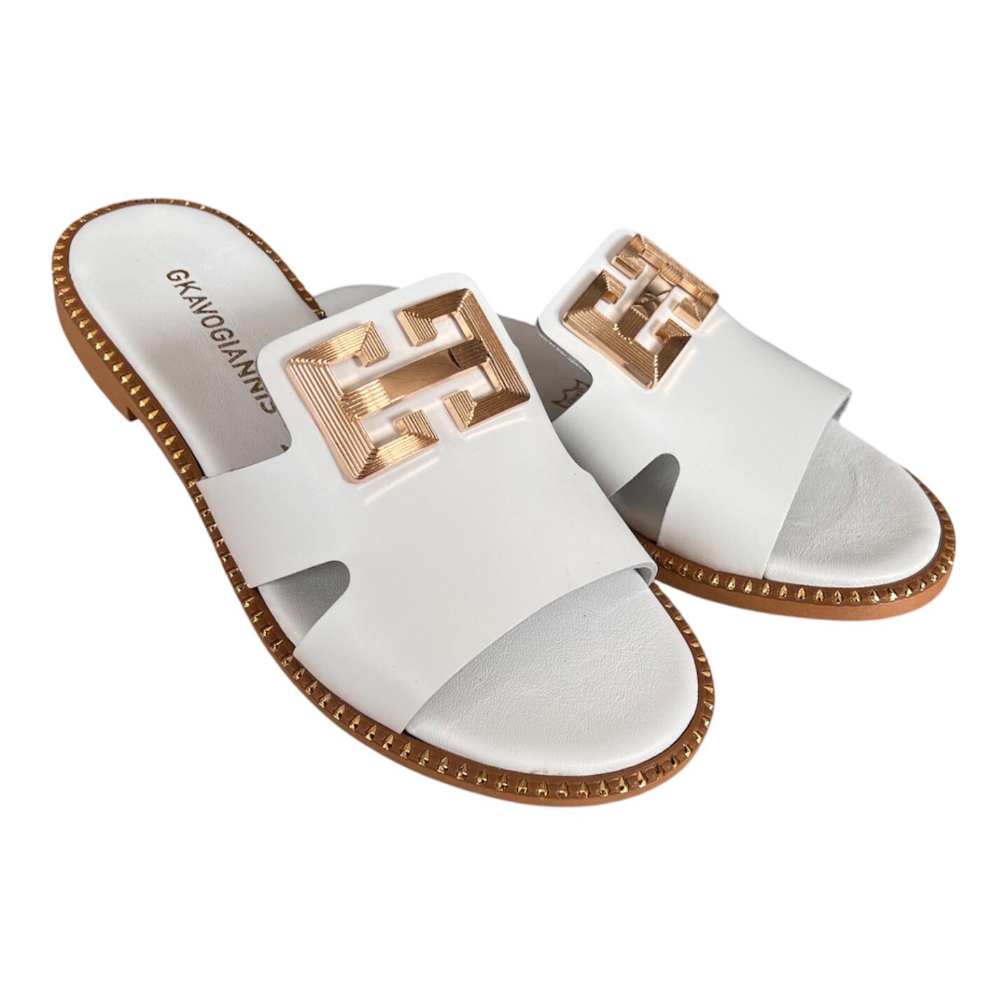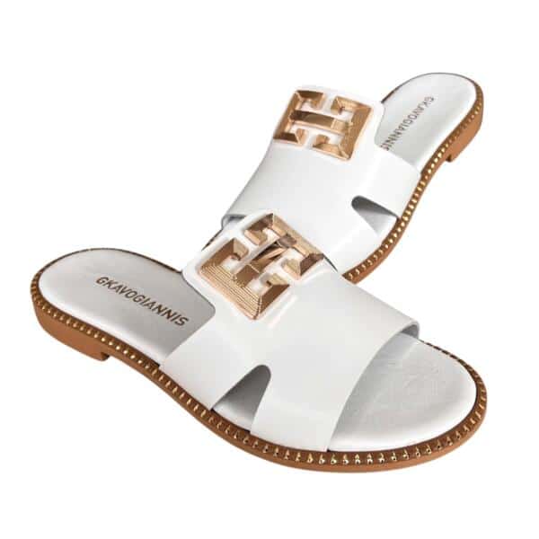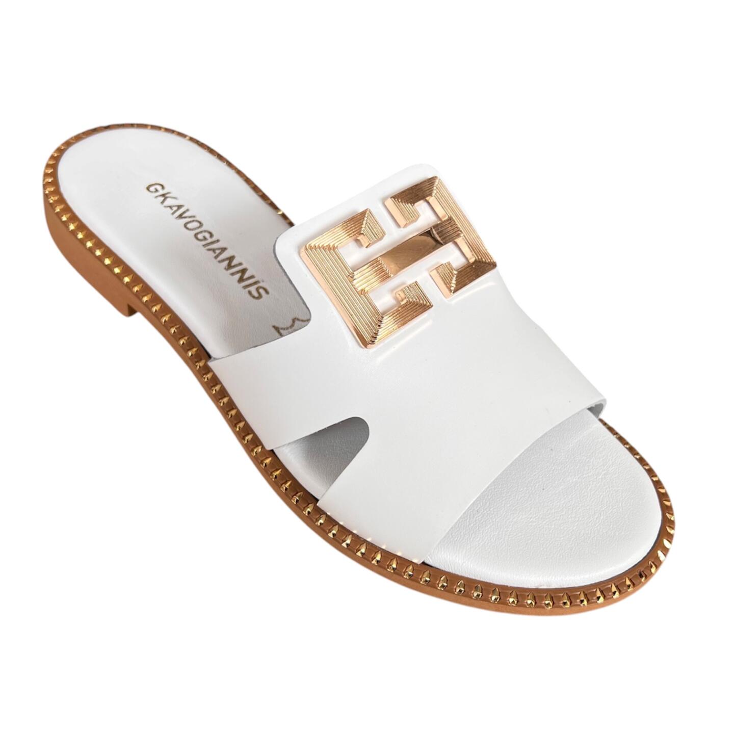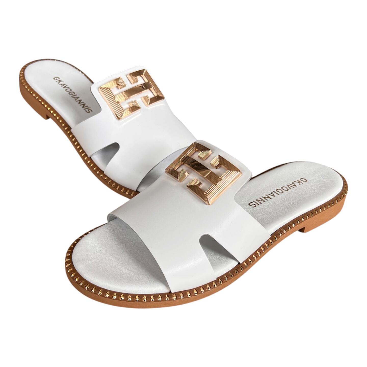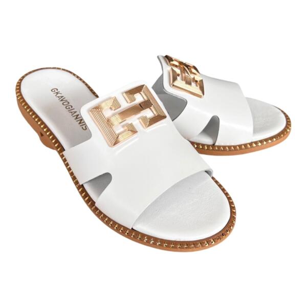 Γυναικεια χειροποιητα δερματινα σανδαλια GKAVOGIANNIS ΛΕΥΚΟ – 607