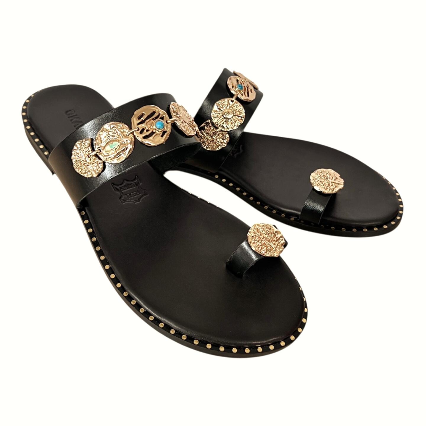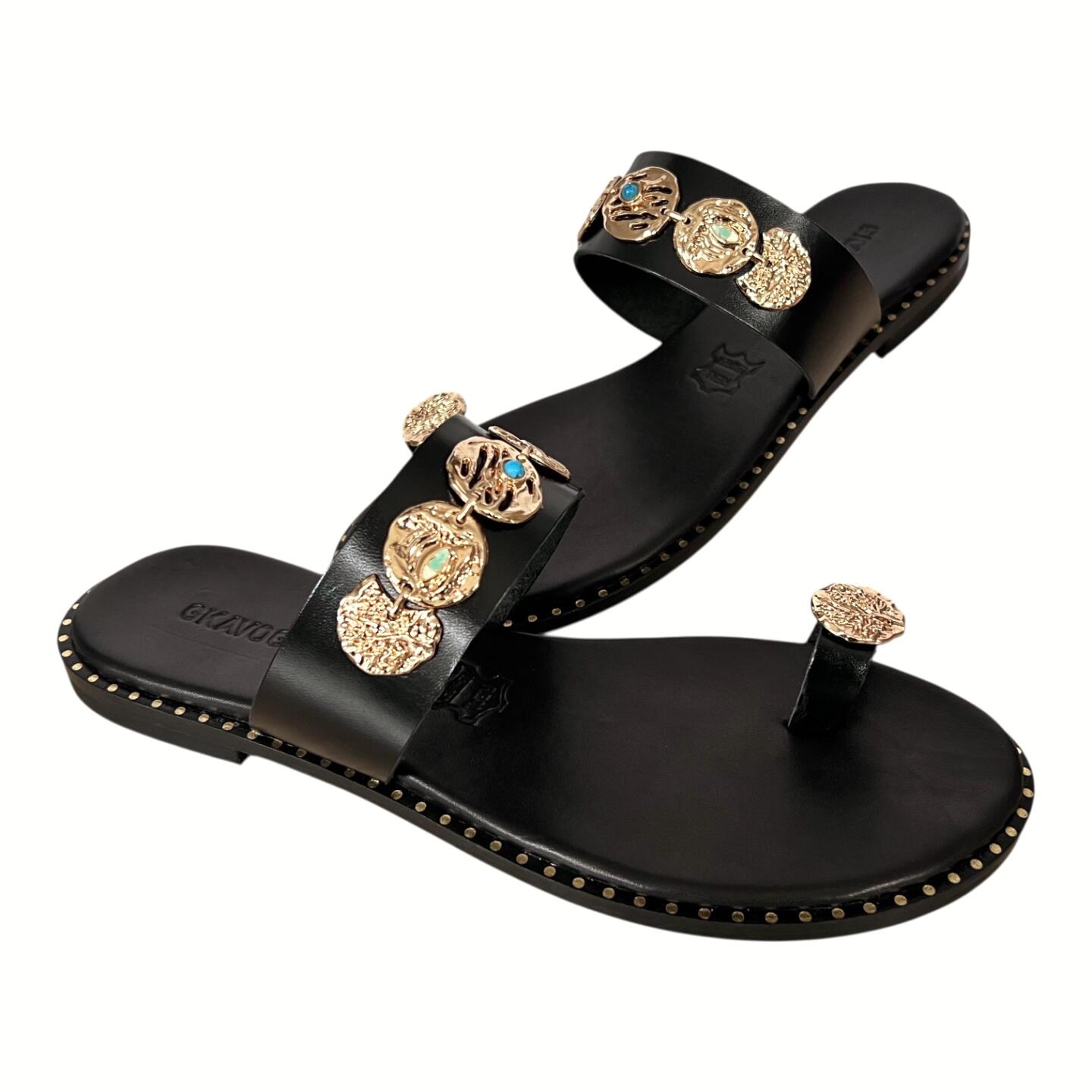 Women’s handmade leather sandals GKAVOGIANNIS BLACK – 451