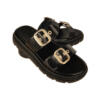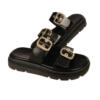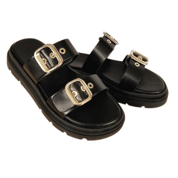 Flatforms δερμάτινα ανατομικά σανδάλια με φαρδιές φάσες με επίχρυσους τοκαδες.