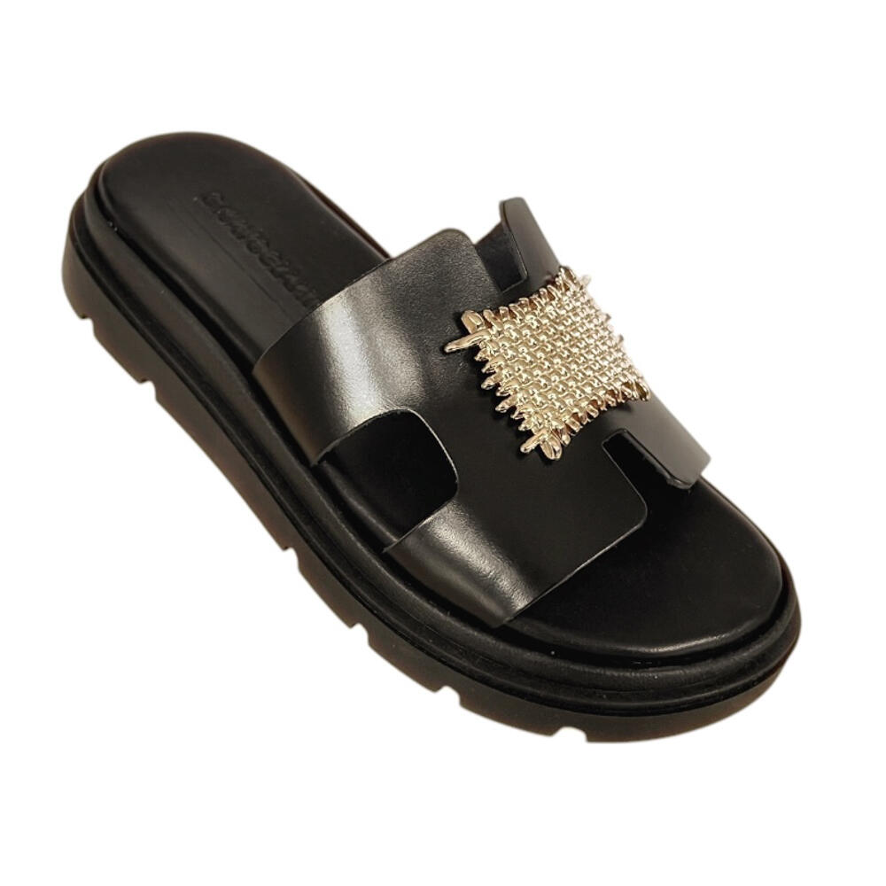 Flatforms δερμάτινα σανδάλια με φαρδιές φάσες με επίχρυσα διακοσμητικα.
