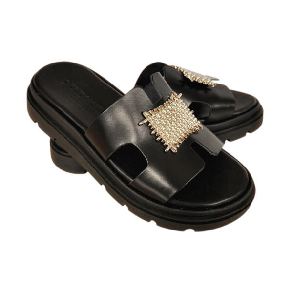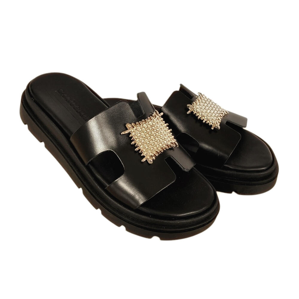 Γυναικεια χειροποιητα δερματινα σανδαλια GKAVOGIANNIS ΜΑΥΡΟ – 565