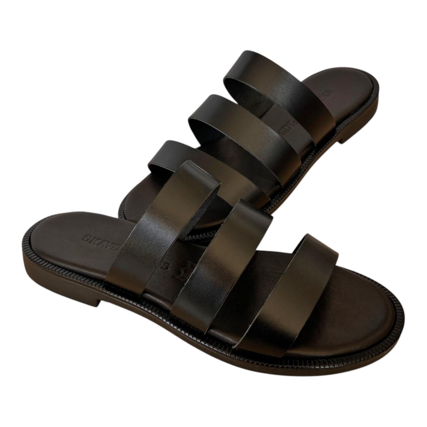 Το χειροποίητο flat δερμάτινο σανδάλι GKAVOGIANNIS αποτελεί μία κομψή και διαχρονική επιλογή για κάθε καλοκαιρινή εμφάνιση. Ο προσεγμένος σχεδιασμός του αναδεικνύει το πόδι, προσφέροντας ταυτόχρονα άνεση και σταθερότητα σε κάθε βήμα.