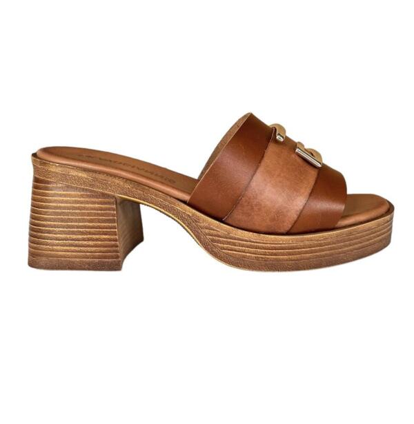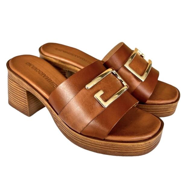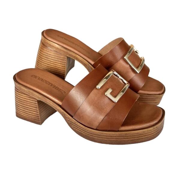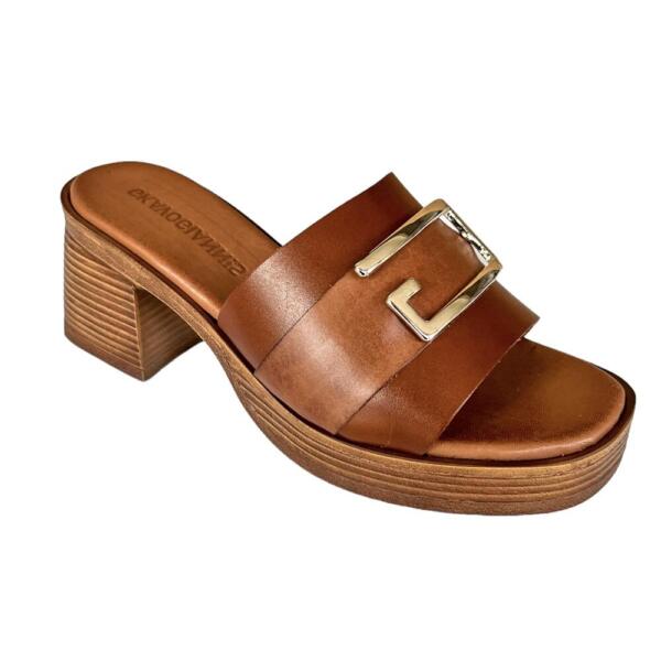 Δερμάτινα Γυναικεία Πέδιλα GKAVOGIANNIS με Τακούνι ΚΑΦΕ – 465
