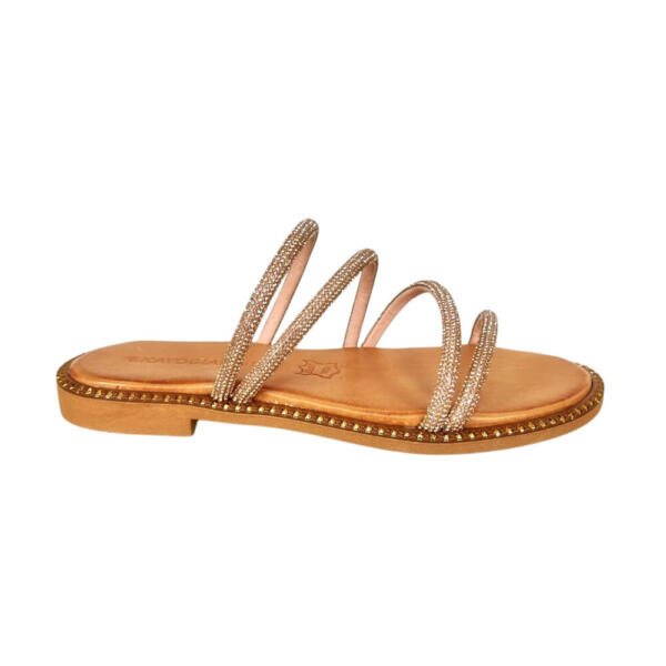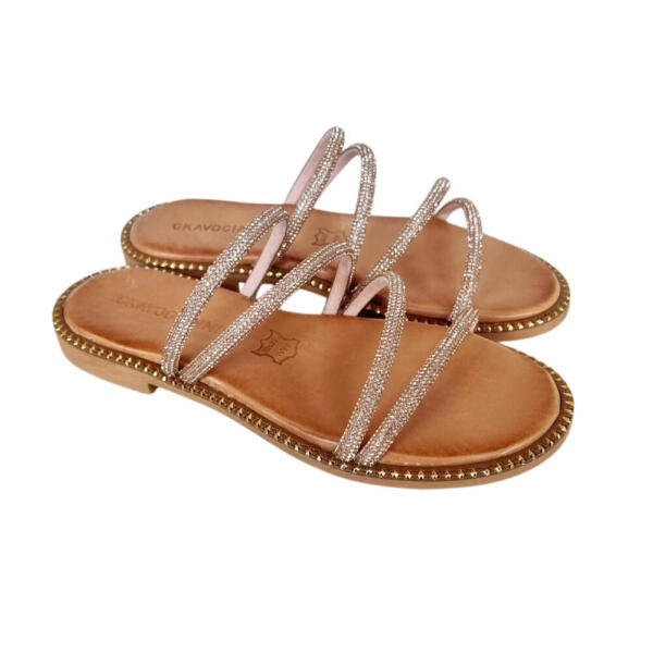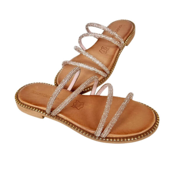 Handmade flat sandal with strass.