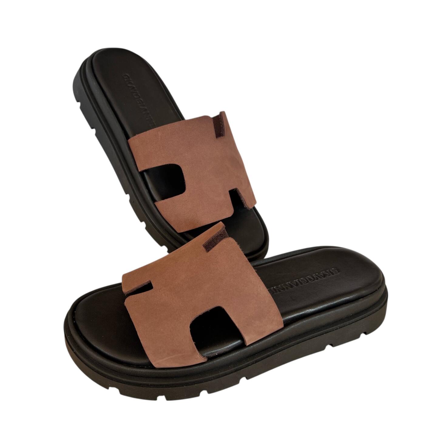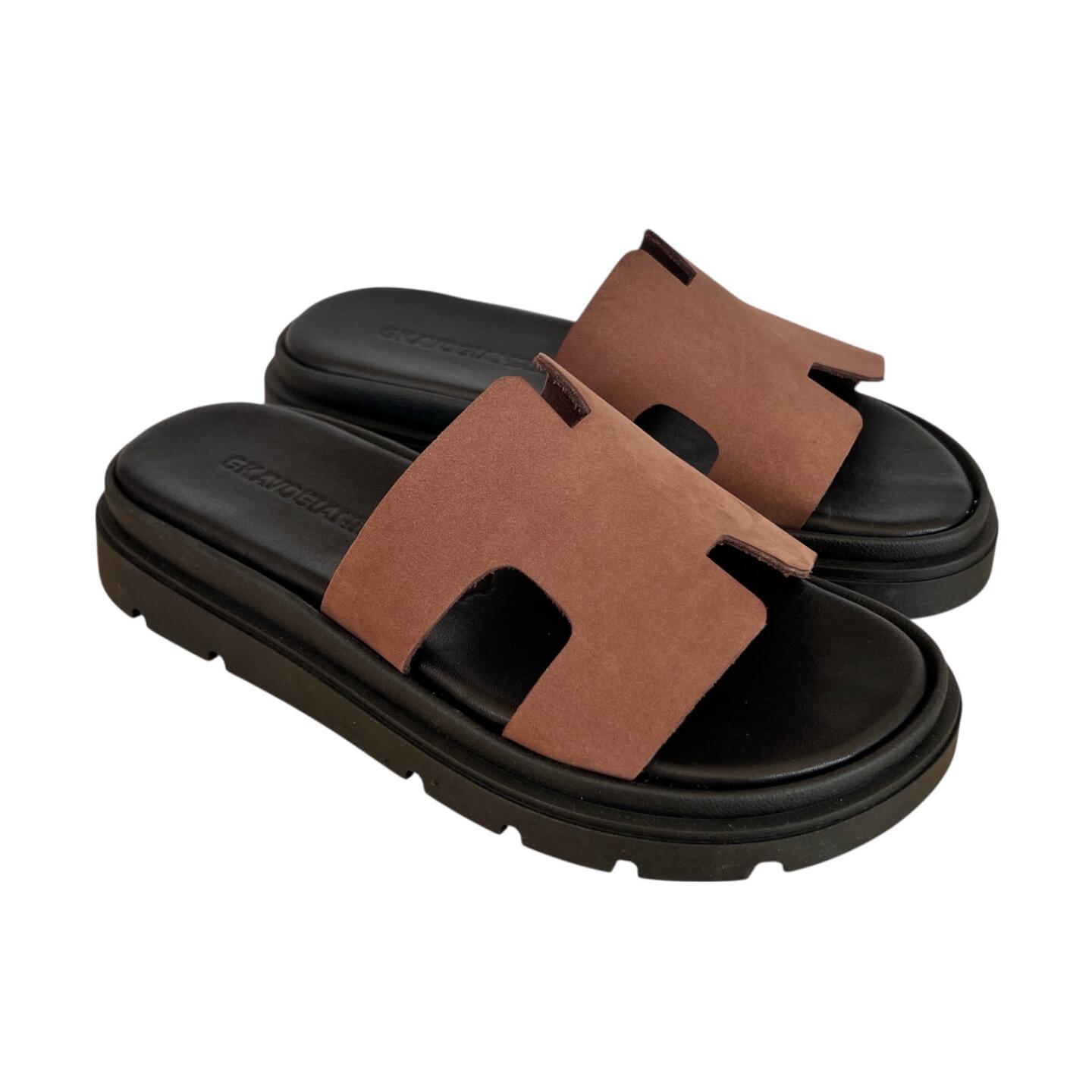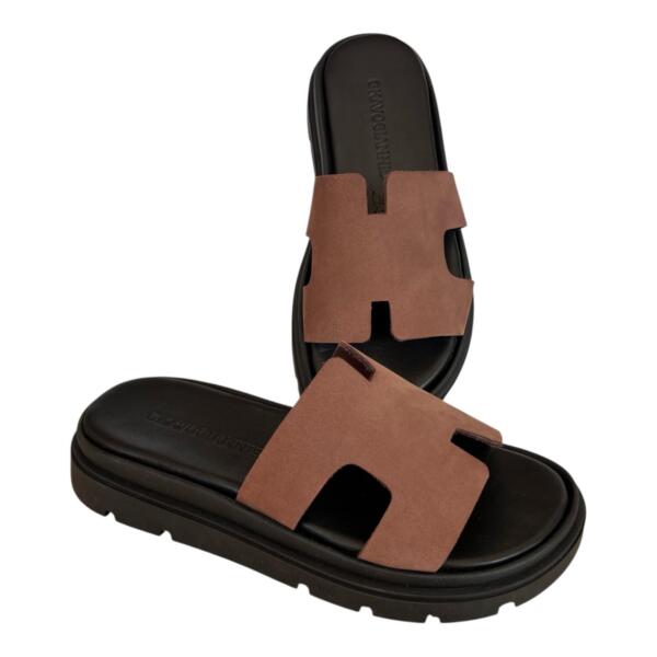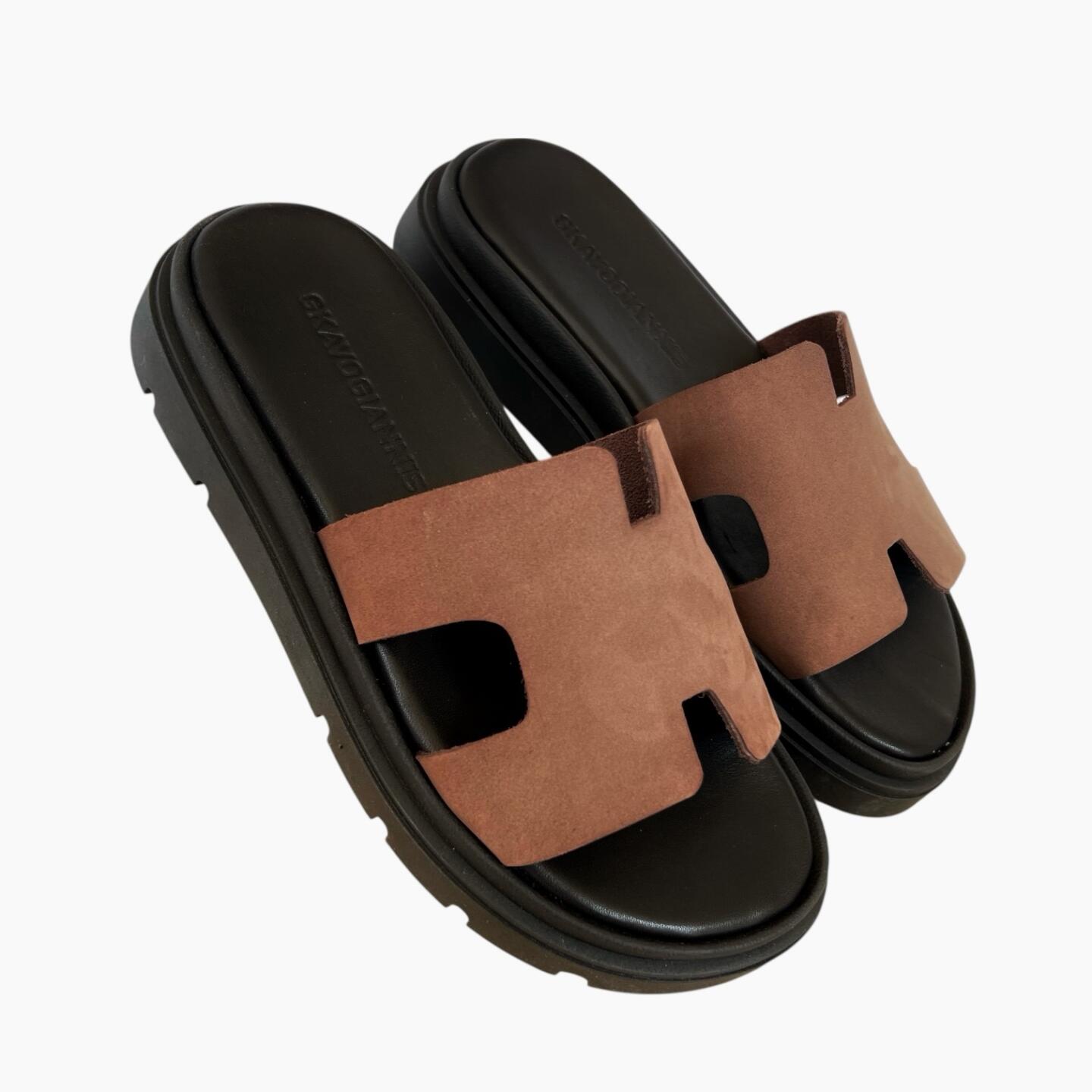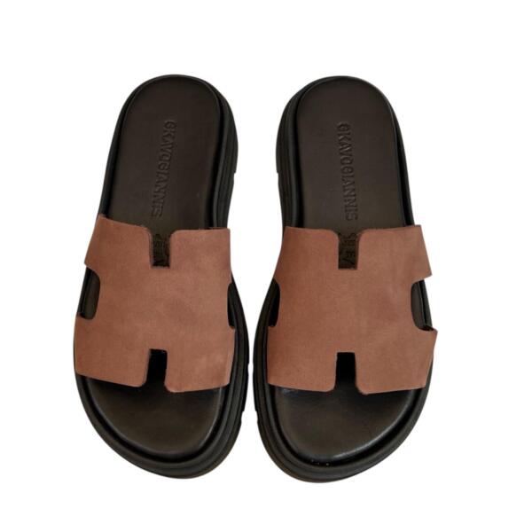 GKAVOGIANNIS women’s handmade leather sandals made of genuine nubuck leather stand out for their soft texture and modern flatform design. The leather sandal properly hugs the foot, offering stability and comfort with every step, ideal for everyday wear.