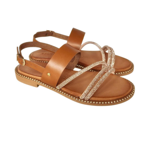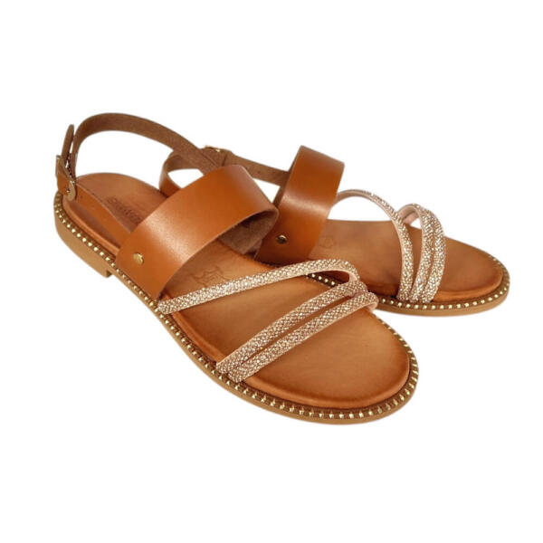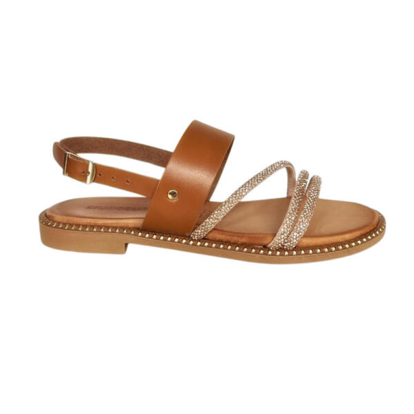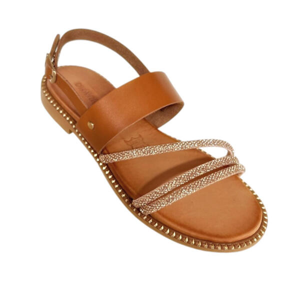 Χειροποίητο flat σανδάλι με strass.