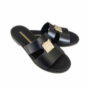 Γυναικεια χειροποιητα δερματινα σανδαλια GKAVOGIANNIS ΜΑΥΡΟ – 555